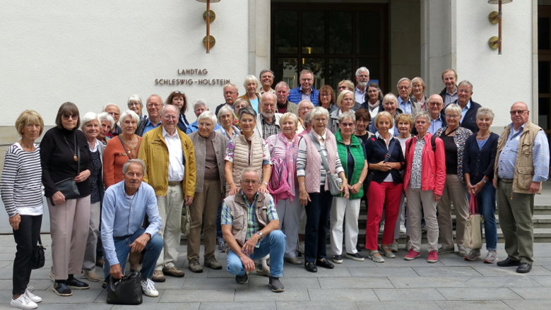 Der Rellinger Ortsverband der Senioren-Union hat am 20.09.23 mit fast 50 Teilnehmern den Schleswig-Holsteinischen Landtag in Kiel besucht und in dem eindrucksvollen Plenarsaal eine lebhafte Debatte zum Thema Modernisierung der Polizei und zur Mehrwertsteuer auf Speisen in der Gastronomie verfolgt. Anschließend fand noch ein Gespräch mit Landtagsabgeordneten aus dem Kreis Pinneberg, u.a., MdL Peter Lehnert, statt.